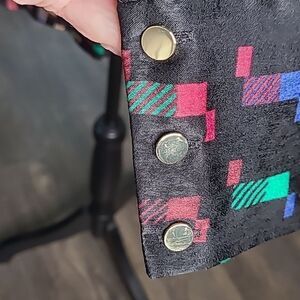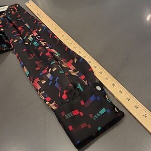 NWT Investments Black with Colorful Print Bow Blouse Long Sleeve Button Down