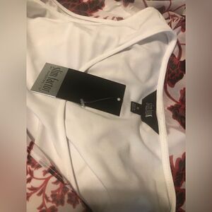 Solid white semi fitted knit body underneath