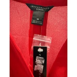 NWT Investments Woman 1X Blouse Long Sleeves Solid Red Career Pull Over V Neck