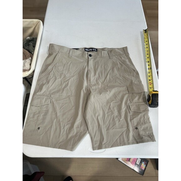 NWT Iron Co Belted Stretch Performance Hybrid Cargo Shorts Tan Size 38