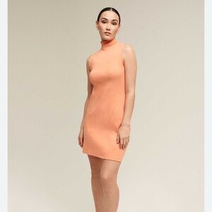 NWT Isaac Mizrahi Coral Mock Turtleneck Dress. The sleeveless design and mock neck provide a chic and modern touch, while the mini length offers a versatile option for various occasions. The dress's subtly textured fabric adds a touch of richness, while the understated color palette allows it to be easily dressed up or down. Whether paired with heels and statement jewelry for a formal event or sandals and a cardigan for a casual outing, this dress exudes effortless style. Coral coloring. Size medium.