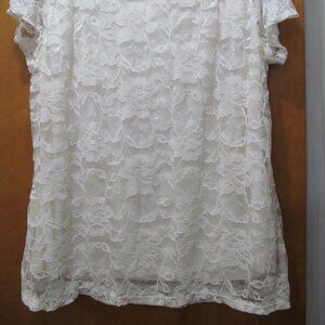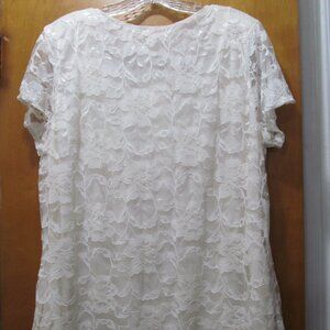 NWT Isaac Mizrahi Floral Lace Top Short Sleeve Lined Ivory "Ivy" Size XXL