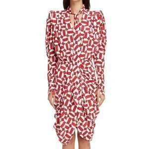 NWT Isabel Marant Atoae Print Stretch-Silk Dress in Red, Size 36 (US 4)