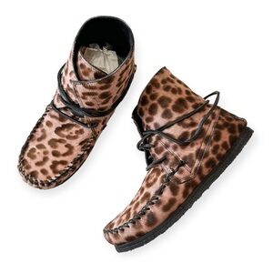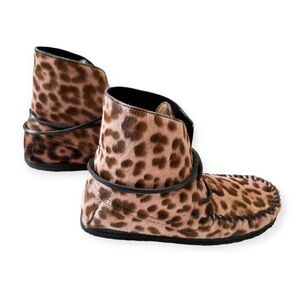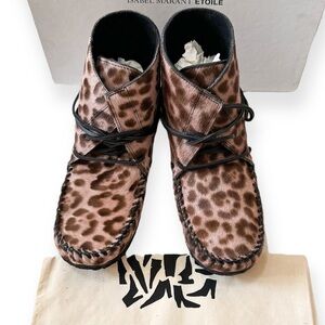 NWT Isabel Marant Flavie Calf-hair Moccasin Ankle Boots In Leopard, Size 37EU