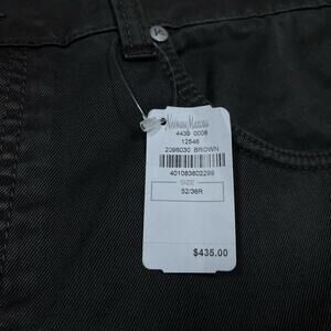 New with price tag but back patch does have some minor wear. Tagged 52, measures a tad over 36” on the waist with a 33” inseam. Cotton elastane blend in nice dark brown color, with unique Isaia Napoli keychain logo detail. Retailed for 435 USD. See pictures for details and measurements. Orders ship out on Monday, Wednesday, and Friday.