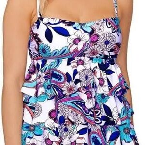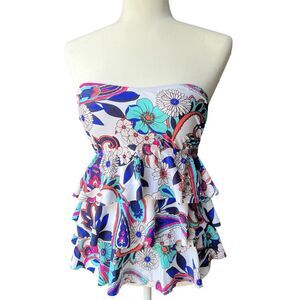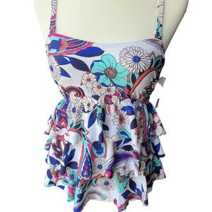 NWT Island Escape Tankini Womens sz 8 Triple Tier Ruffle Bandeau Floral boho