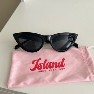 Stylish black cat eye sunglasses in ‘PARIS’ only tried on and never worn. Comes with a pink Island Sun Club cover.