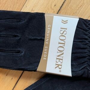 NWT Isotoner Genuine Suede gloves black size large. GUC.