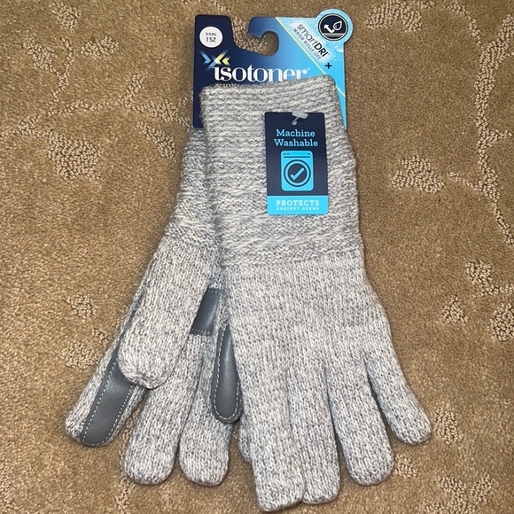 NWT Isotoner Gray Touchscreen SmartDri Gloves, OS