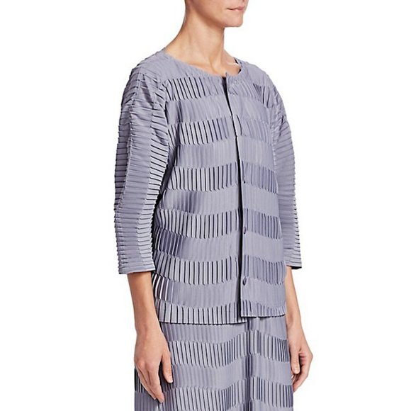 NWT Issey Miyake wave stripe pale grey cardigan blouse