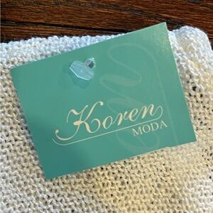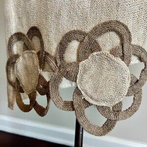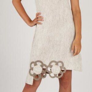 NWT Italian Asymmetric Knit Linen Dress with Handmade Floral Applique L cream