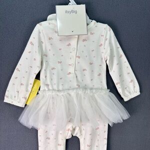 NWT ItsyBig White Floral Tulle Skirt Snap Closures Footed Onepiece Outfit 9M