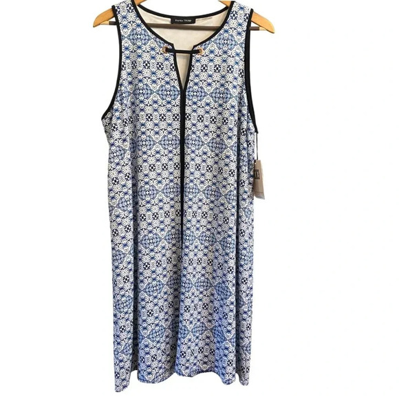 NWT Ivanka Trump Mykonos Greek Pattern Sleeveless Midi Dress Size Large