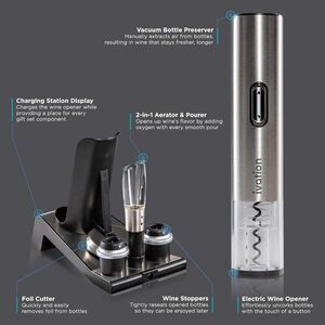- Also includes wine stoppers, foil cutter, charging station, aerator & pourer