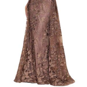 NWT Ivonne D ID801 Embroidered Tulle Formal Gown Cocoa Size 24W