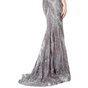 NWT Ivonne D by Mon Cheri 220D22 Novelty Embroidered Formal Gown Gray size 8