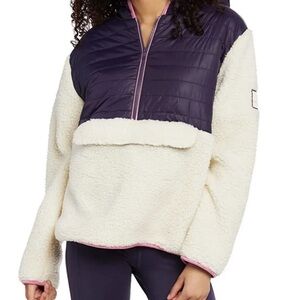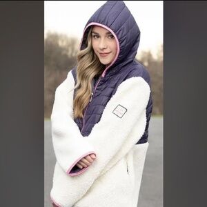 NWT Ivory Ella Claire Sherpa Mixed Media Jacket Cream/Purple