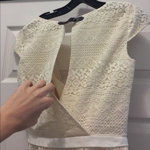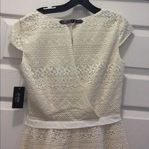 NWT Ivory lace Guess faux wrap dress size 4. Open back with buckle at the top