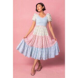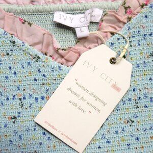NWT Ivy City Co. Emily Midi in Spring Floral Patchwork Smocked Dress L