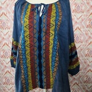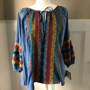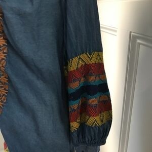 NWT Ivy Jane Aztec Embroidered Denim Top Xs