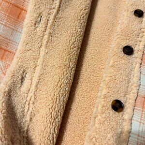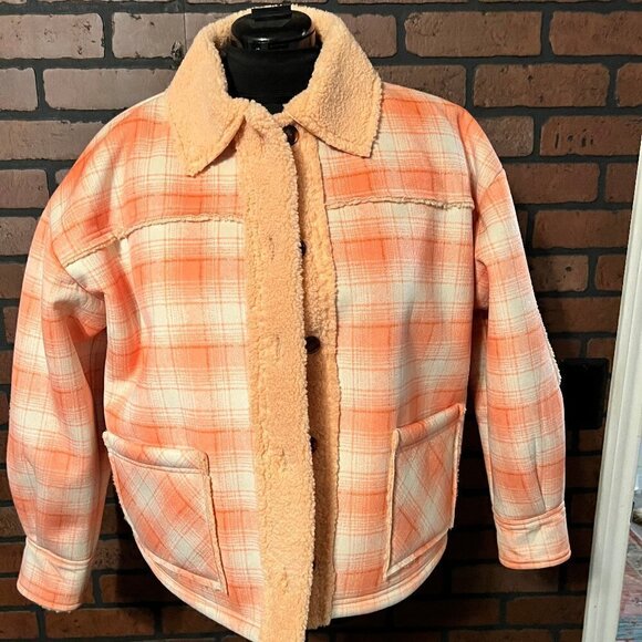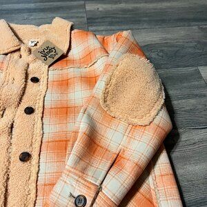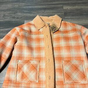 NWT Ivy Jane Fleece lined jacket with elbow patches. size Sm. Orange / White plaid. Super cute. Button front with two pockets. 25" across the chest. 24" in length