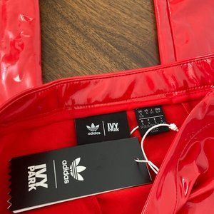 NWT Ivy Park x Adidas red straight-leg pants in faux latex with ankle zippers.