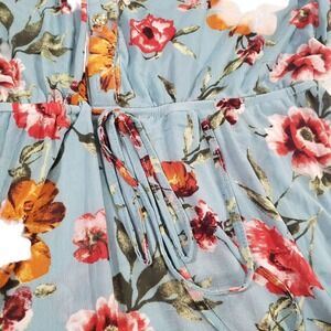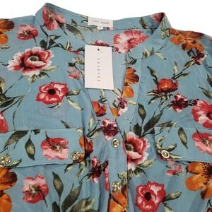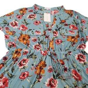 NWT Ivy Rose Blouse Womens Blue 1X Floral V Neck Elasticized Waist Sheer Long