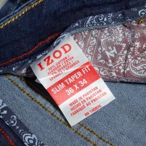 NWT Izod Comfort Stretch Waistband Slim Tapered Jeans Men Size 36x32 (Tag 36x34)
