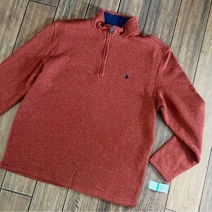 NWT Izod Men’s Pullover Quarter Zip Fleece Top Burnt Orange Large Autumn