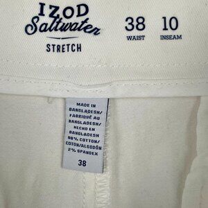 NWT Izod Saltwater Stretch Flat Front Washed Chino Cotton Short White Men's 38W