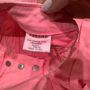 Elevate your casual style with these high-waisted pink shorts from J Brand. Crafted from vibrant denim, they feature a chic rolled hem for a tailored finish. Perfect for adding a pop of color to your everyday look.