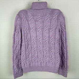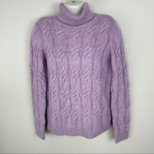 New with tag J Brand Noella Wool Turtleneck Cable Knit Sweater in color Faded Victoria, size M. Ribbed neck, cuffs, and hem. Turtleneck. Long sleeves. Relaxed fit. Pullover style. Extra fine merino wool.