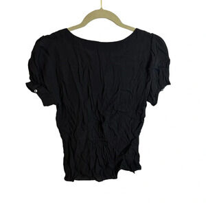 Brand new with tags. Adorable black button front puff sleeve blouse. Has elastic around waist. WOMENS size 4 petite.