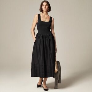 NWT!! J. CREW Black Drop-Waist Mixy Dress Tank Midi Dropwaist Solid Medium