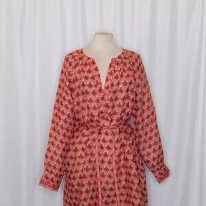 NWT!! J. CREW Cabana Mini Dress Block Print Ramie Coral Multi Cover Up Size 2X