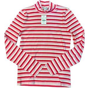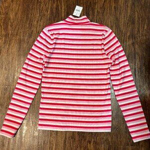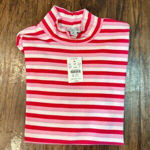 NEW WITH TAGS - J. Crew Factory Striped Ribbed-knit Mockneck Top. 67% cotton/28% polyester/5% elastane. Long sleeves. Machine wash. COLOR is White Resort Pink.