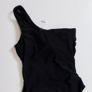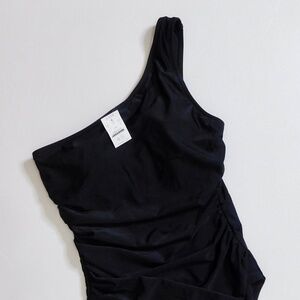 NWT!! J. CREW Factory One Shoulder Ruched Swimsuit One-Piece Solid Black Medium