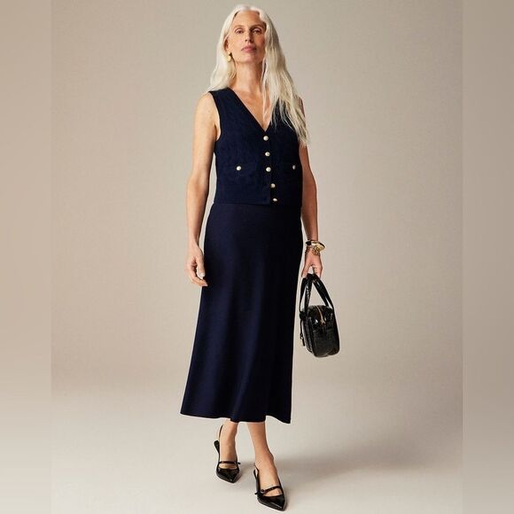 NWT J CREW Foldover sweater midi skirt in merino wool blend in dark navy