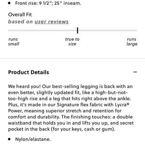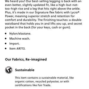 We heard you! Our best-selling legging is back with an even better, slightly updated fit, like a high-but-not-too-high rise and a leg that hits right above the ankle. Plus, it's made in our Signature flex fabric with Lycra® Power, meaning superior stretch and retention for comfort and durability. The finishing touches: a double waistband that holds you in and lifts you up, and secret pocket in the back (for your keys, cash or gum).