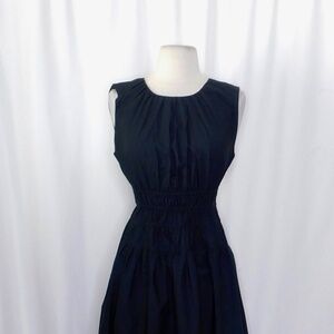 NWT!! J. CREW Hyacinth Dress Smocked Cotton Poplin Black Midi Pockets Poplin XSP
