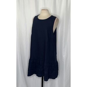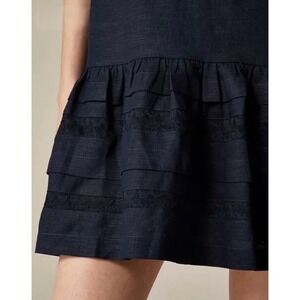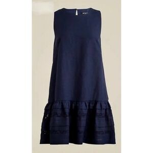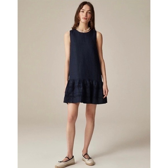 NWT!! J. CREW Maxine Ruffle Trim Dress Linen Navy Blue Drop Waist Lace Large