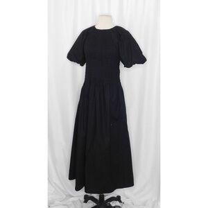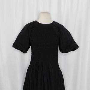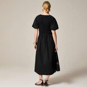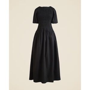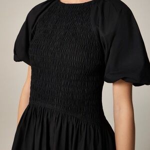 NWT!! J. CREW Meadow Dress Smocked Cotton Poplin Solid Black Midi Small Tall