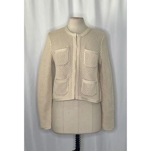 NWT!! J. CREW Open Pointelle Stitch Cardigan Sweater Pockets Cropped Medium