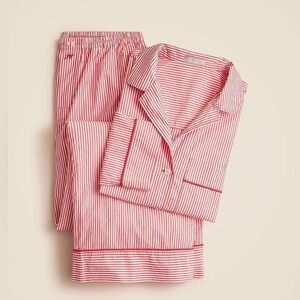 NWT J CREW Pajama pant set in striped cotton poplin in Candy Apple