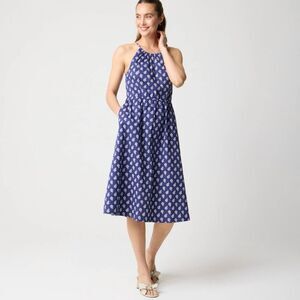 NWT J CREW Poplin Halter Midi Dress Womens 14T Navy Whimsical Sundress Preppy