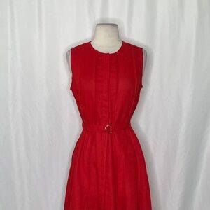 NWT!! J. CREW Seamed Linen Dress Removable Belt Red Arroyo Retro Small Petite SP