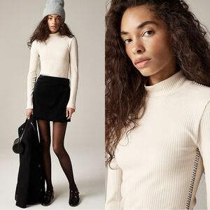 NWT J CREW Premium rib turtleneck with whipstitch trim in Natural