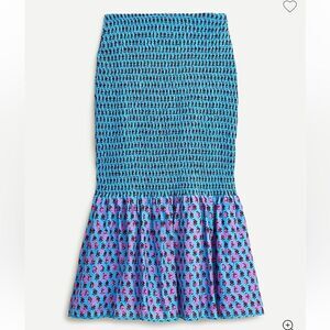 NWT J. CREW Smocked Mermaid Midi Skirt in Floral Block Sz 8