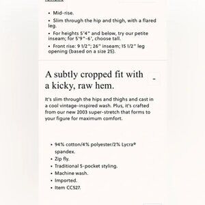NEW NWT J Crew ‘03 Mid Rise Kick Out Black Jean Pants Size 30