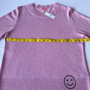 * Features: NEW with tags, 100% cashmere, classic fit crewneck with navy yarn embroidered smiley face
